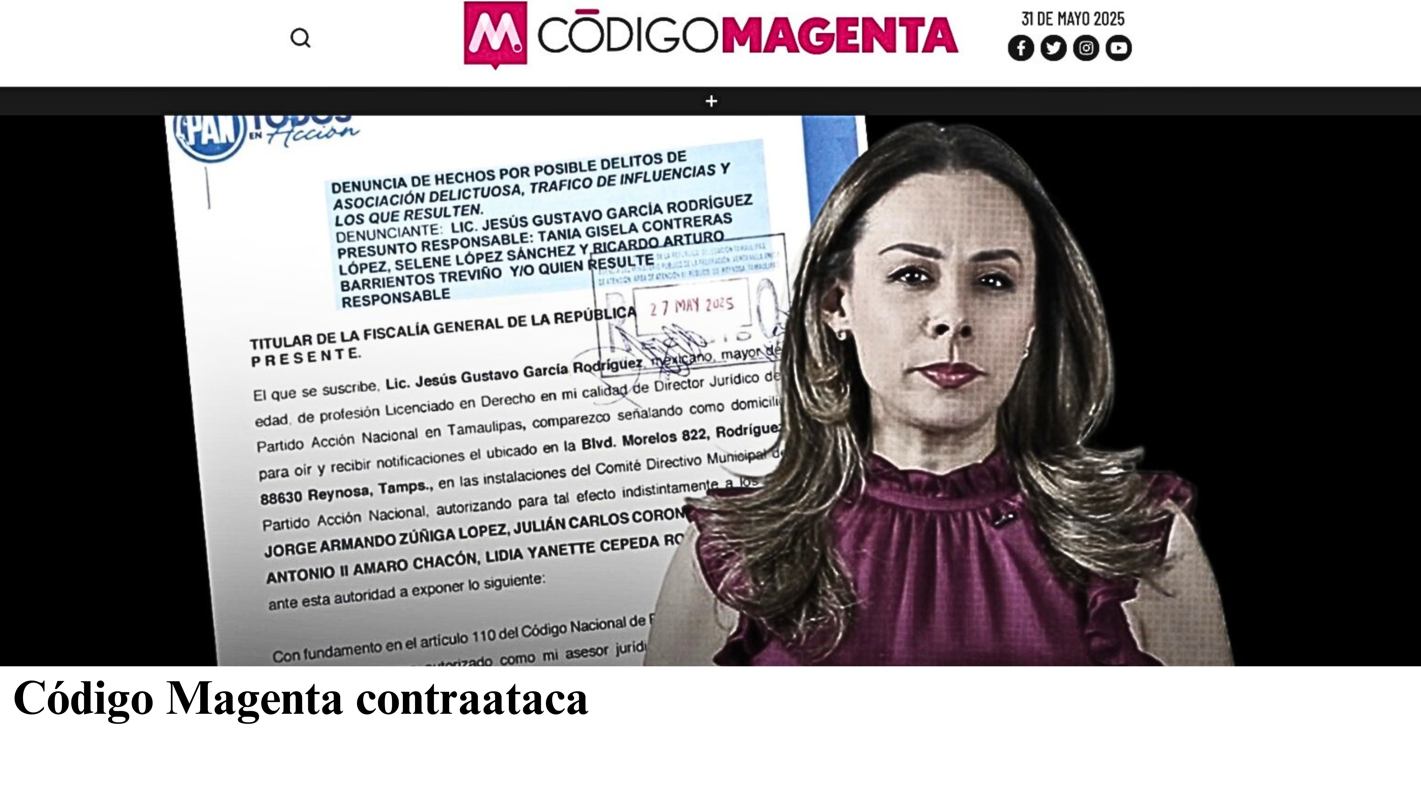 Tania, denunció en la segunda quincena de mayo ante el Tribunal Electoral del Poder Judicial de Tamaulipas a Código Magenta y su director editorial, Rodrigo Carbajal, por calumnia (delito derogado) y violencia política en razón de género.