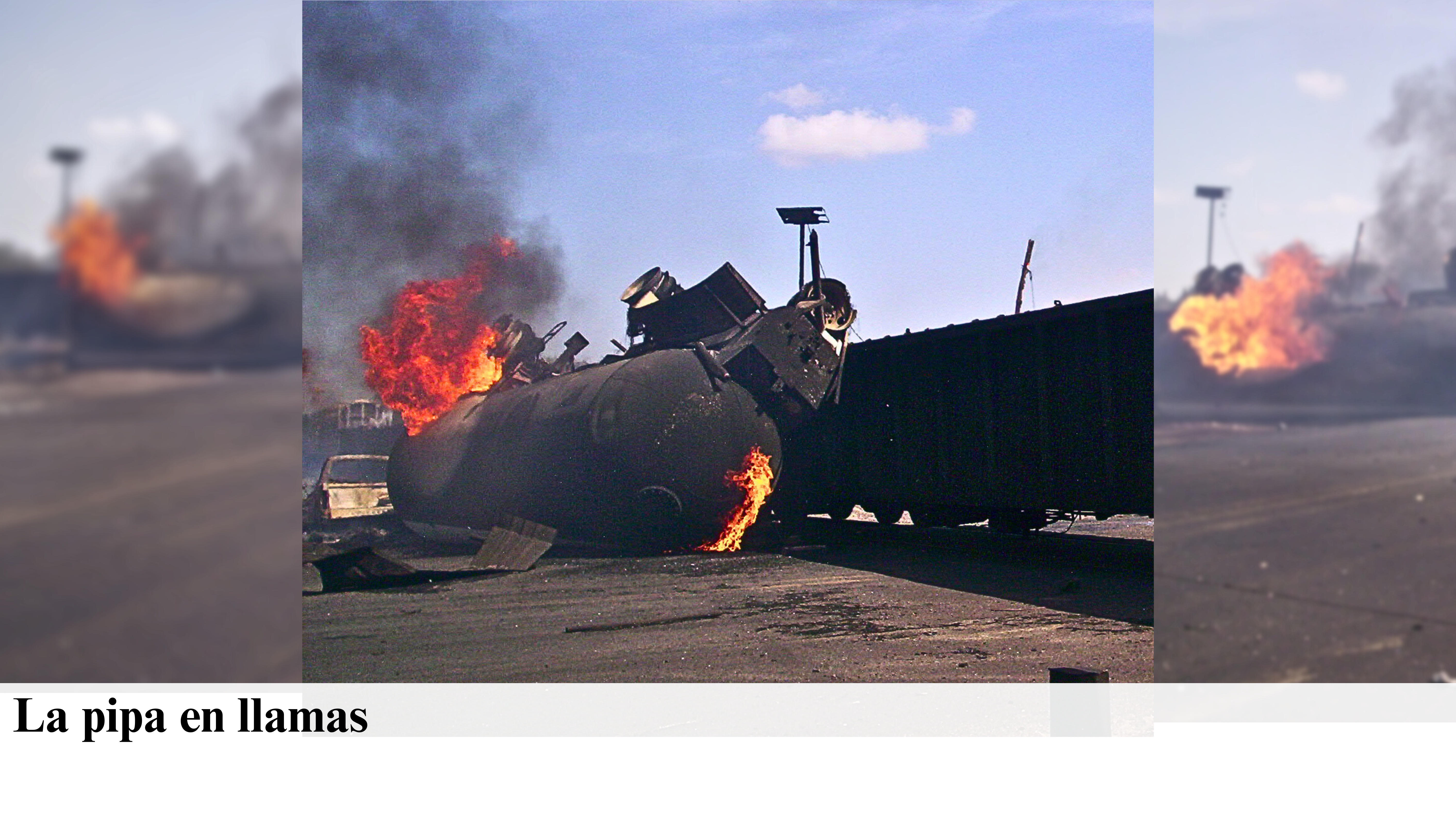 Pero, por la tarde, a las 15:00 horas, en el poblado Lucio Blanco ubicado a 35 kilómetros al poniente de Matamoros por la carretera a Reynosa, nadie pudo evitar el siniestro que fue devastador, después de que una pipa de gas doble remolque impactó al tren. Fue cuestión de tiempos, pues todo hace indicar que el chofer del tráiler quiso ganarle el paso a la mole de hierro por lo que los maquinistas accionaron el silbato pero nunca disminuyeron la marcha y se dió el impacto precisamente en el espacio donde se unen el primer tanque con el segundo. Al choque, uno de los tanques, ya suelto explotó, mientras que el otro quedó ganchado al tractor, del lado poniente de la vía.